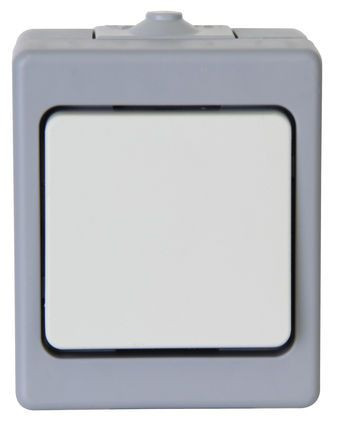STANDARD - Aufputz-Feuchtraum Universalschalter (Aus-/Wechselschalter), Bemessungsspannung 250V~, Schaltvermögen 10AX, Schutzart IP44, Farbe: grau