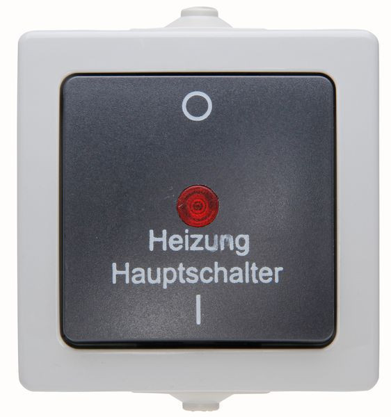 NAUTIC - Aufputz-Feuchtraum Heizungshauptschalter,beleuchtet, 2-polig mit Linse und eingesetzter Glimmlampe, Nennspannung 250V~, Schaltvermögen 10AX, Schutzart IP44, Farbe: grau
