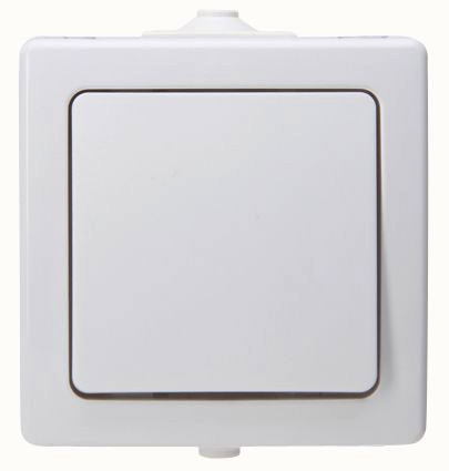 Aufputz-Feuchtraum Universalschalter (Aus-/Wechsel) im Design NAUTIC und der Farbe arktisweiß mit einer Bemessungsspannung von 250V~ sowie einem Schaltvermögen von 10AX. Schutzart IP44