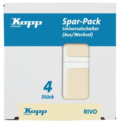 | Kurzbeschreibung | RIVO - Profi-Pack: 4x Universalschalter (Aus-/Wechsel), Farbe : cremeweiß |