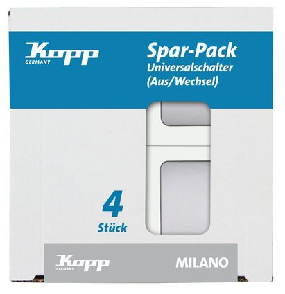 | Kurzbeschreibung | MILANO - Profi-Pack: 4x Universalschalter (Aus-/Wechsel), Farbe: stahl |