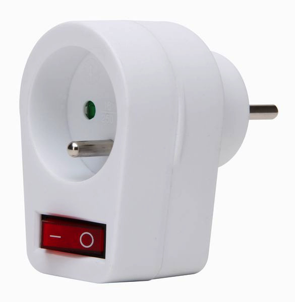 | Kurzbeschreibung | Mittenschutzkontakt-Zwischenstecker (Export), mit 1-poligem beleuchtetem Schalter, Farbe: weiß |