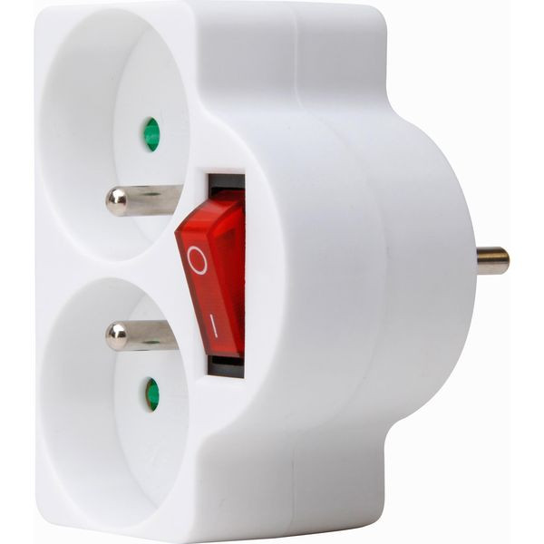 2-fach Mittenschutzkontakt Adapter (nur für den Exportbdarf), mit erhöhtem Berührungsschutz, 1-poligem beleuchtetem Schalter, 2x16A, 230V~/50Hz, Schutzart IP20, Farbe: weiß