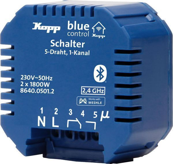 | Kurzbeschreibung | Blue-control Schaltaktor, Schalter 1-Kanal, 5-Draht, mit potentialfreiem Kontakt, mit Bluetooth Mesh-Technologie |
