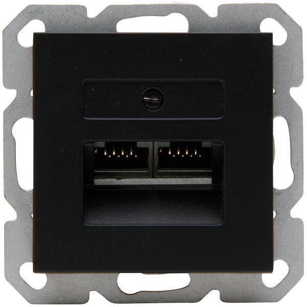 ATHENIS - UAE-Anschlussdose, Universal-Anschluss-Einheit für Telefon- und Datentechnik, ISDN-fähig, RJ11/12, RJ 45, mit Schrägauslass, Schraubkontakte, Unterputz, 8 Pole belegbar, 2 parallele Anschlüsse, Farbe: schwarz matt