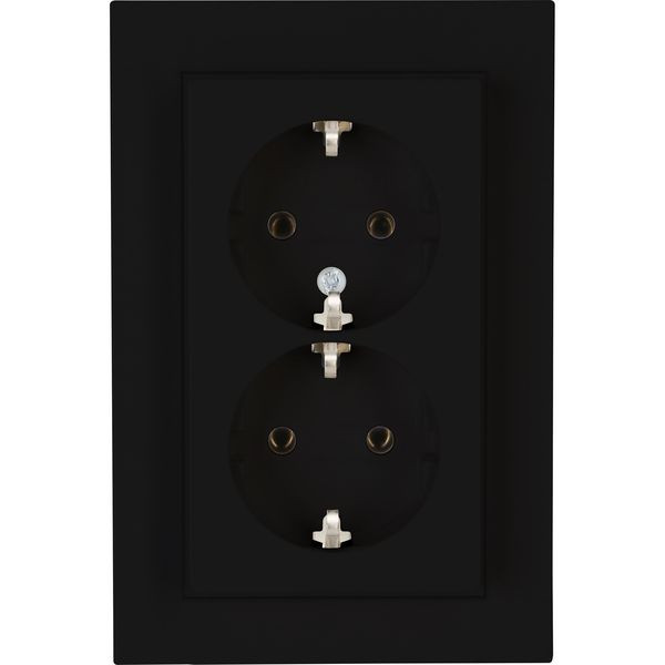 HK07 - Schutzkontakt-Steckdose, 2-fach, ohne erhöhten Berührungsschutz, Komplettgerät für eine Schalterdose mit Durchmesser Ø 60mm, Nennstrom 16A, Bemessungsspannung 250V~, Schutzart IP20, Farbe: schwarz matt