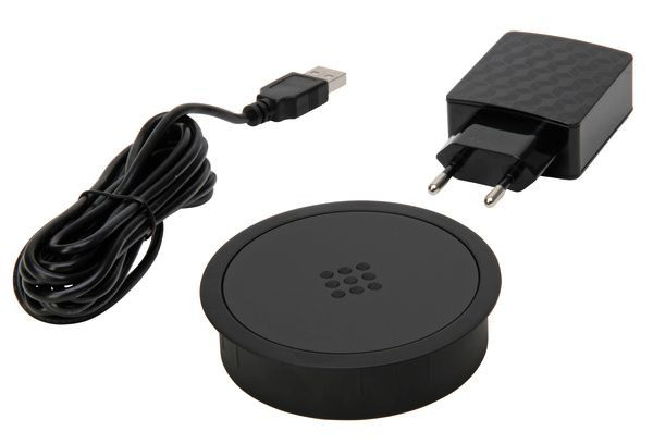 VersaCHARGER zum induktiven Laden von Smartphones, Ausführung: Ring schwarz - Fläche schwarz, inkl. Netzstecker und 2 Meter Anschlußkabel (USB A auf USB B Micro), Bohrung 80mm, Eingang 5V (DC) 2A, Ausgang 5V (DC) 1A, Gesamtausgangsleistung 5 Watt, IP20