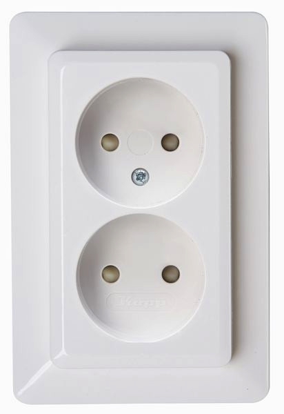 | Kurzbeschreibung | HK02 - Steckdose ohne Schutzkontakt, 2-fach, erhöhter Berührungsschutz, Komplettgerät, Farbe: arktisweiß |