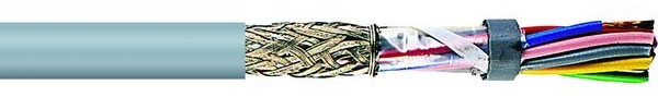 Sie ist durch das dichte Kupferabschirmgeflecht besonders geeignet für die störgeschützte, EMV-gerechte Übertragung von Signalen. feindrähtige blanke Kupferlitze, Aderisolation und Mantel aus PVC, Mantelfarbe grau, Aderkennzeichnung: verschiedenfarbig, Adern in Lagen verseilt, Folienbandierung, Abschirmung mit dichtem Geflecht aus verzinnten Kupferdrähten, besonders geeignet für die nach innen und außen störgeschützte EMV-gerechte Übertragung von Signalen, Verwendung überall als Steuer- und Signalleitung (Maschinen-, Werkzeug- und Anlagenbau, Rechneranlagen, Waagen, sowie in der Mess- und Regeltechnik), max. Betriebstemperatur 80 °C, durch optimale Konstruktion haben diese Leitungen auch bei hohen Aderzahlen einen relativ geringen Außendurchmesser, geeignet für flexible und feste Verlegung bei freier Bewegung ohne Zugbeanspruchung und ohne zwangsweise Bewegungsführung in trockenen Räumen geeignet
