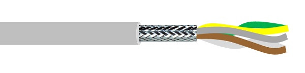 Aufbau: Feindrähtige blanke Kupferlitze, Aderisolation aus Spezial-PVC, Aderkennzeichnung: verschiedenfarbig (nach DIN 47100), Adern in Lagen verseilt, Folienbandierung, Abschirmung mit Geflecht aus verzinnten Kupferdrähten (optische Bedeckung ca. 85%), Spezial-PVC-Mantel, Farbe: grau