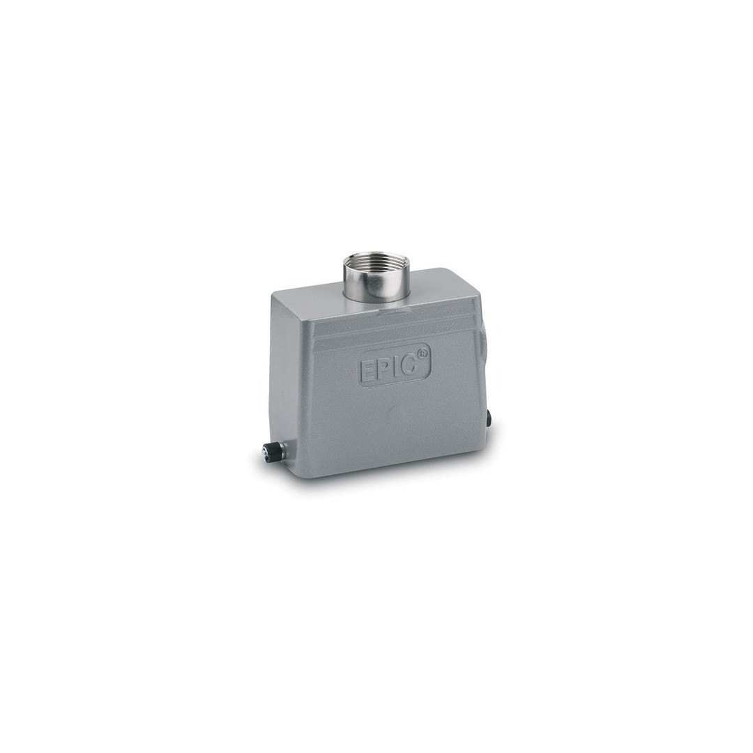 Tüllengehäuse H-B 16 TGH-RO 21 ZW. HOOD; Tüllengehäuse; Baugröße: 16B; Steckverbinder Bauform: Hoch; Längsbügel; Anzahl der Leitungseinführungen: 1; Aluminium, pulverbeschichtet; IP-Schutzart gesteckt: IP 65; Anwendungsgebiete: Veranstaltungstechnik;Anlagenbau;Kunststoffindustrie; Nutzen: M40 Gehäuse auf M50 erweiterbar mit SKINTOP 53112083 (Klemmbereich 27 - 35 mm);Mehr Platz im Innenraum für die Verkabelung;Der Standard bei den Gehäusen Große Auswahl an unterschiedlichen Einsätzen