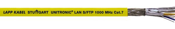 hauptsächlich dort eingesetzt, wo die Endgerätedichte sehr hoch ist, z.B.für die Verkabelung von Büro-, Verwaltungs- und Entwicklungsgebäuden im Tertiärbereich (Etagenverkabelung), Leitungslänge im Tertiärbereich (Horizontalbereich, Stockwerk) soll entsprechend Normen ISO/IEC 11801 bzw. EN 50173 eine Länge von 100 m nicht überschreiten (90 m Kabelkanal + 10 m Arbeitsplatz), LAN-Kabel für die strukturierte Gebäudeverkabelung gemäß EN50173 und ISO/IEC 11801, S/FTP: Kupfergeflecht als Gesamtschirmung und Paarschirmung mit Aluverbundfolie, Außenmantel: halogenfreies, flammwidriges Compound, Massivleiter, Farbe: gelb (RAL 1021), Klasse F in Norm ISO/IEC 11801 entspricht CAT.7, Übertragung von digitalen und analogen Datensignalen, flammwidrig nach IEC 60332-1-2 und Bündelbrandtest gemäß IEC 60332-3-24, IEEE 802.3: 10/100/1000Base-T, 10GBase-T IEEE 802.5: ISDN; FDDI; ATM; cable sharing IEEE 802.3at: PoE geeignet,