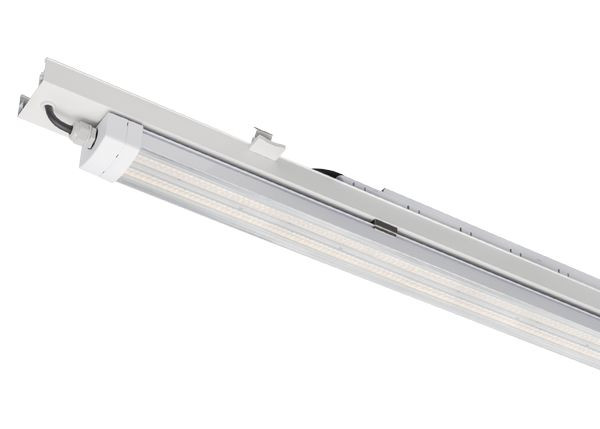 LED Universalmodul FLEXO IP - Lichtbandkonzept mit IP65-Schutz für spezielle Anwendungen - Das LED Universalmodul FLEXO IP ergänzt die innovative FLEXO-Serie, die für eine effiziente und komfortable Lichtband-Sanierung steht. Mit dem staub- und wassergeschützten Gehäuse nach Schutzart IP?65 eignet sich das flexibel einsetzbare Modul speziell für anspruchsvolle Einsatzorte mit Dämpfen oder Schmutz in Industrie und Handwerk. Ob in Produktionsstätten, Lagerhallen, Sägewerken, Schreinereien oder Werkstätten, das Universalmodul überzeugt durch seine Widerstandsfähigkeit und schnelle Montage. Eine große Auswahl an Varianten bietet für viele Situationen die optimale Lösung: Abstrahlwinkel von 60°, 90° oder 110°, klare oder opale Abdeckungen oder Modellversionen mit DALI-Option. FLEXO IP ist nicht nur eine IP65-geschützte Umrüstlösung, sondern präsentiert sich zudem als flexible, langlebige und kosteneffiziente Alternative zu klassischen Feuchtraumwannenleuchten.