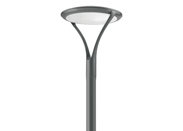 LED Mastleuchte SIGNATURE Mast – Die elegante Art Deco Säule mit homogenem Lichtkomfort - Das Highlight der hochmodernen SIGNATURE-Serie von Holophane bildet die LED Mastleuchte SIGNATURE Mast mit ihrem optischen Komfort durch die Waveguide-Technologie: die indirekte Abstrahlung durch Licht-Reflektion mit ringförmig angeordenten LED-Chips im Inneren der flachen Leuchtenkuppel. Diese zum Patent angemeldete Bauweise sorgt für eine homogene und gleichmäßige Lichtverteilung ohne Spot- oder Schattenbildung und reduziert sichtbare Blendeffekte völlig. So lässt die tagsüber formschöne skulpturenhafte Mastleuchte nachts eine behagliche Atmosphäre entstehen. Das Gehäuse aus Aluminumdruckguss ist nach IP65-Standard versiegelt. Die beiden V-förmigen Arme mit Kupferkern tragen den diskusförmigen Aufbau. Weitere Montageoptionen und Lichtfarben sind auf Anfrage lieferbar.