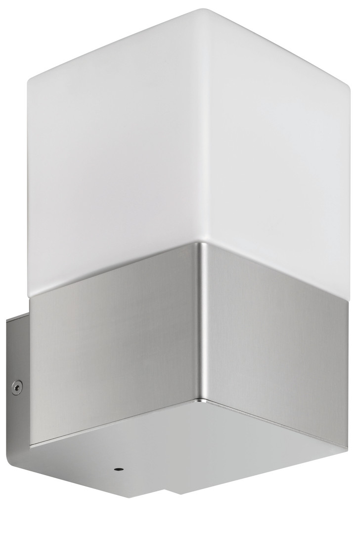 Edelstahl-Wandleuchte, IP44, Edelstahl, Diffusor Opalglas, BxTxH 12x14,5x20,5 cm, 1xE27 max. 100 Watt, EEK: A++ bis E