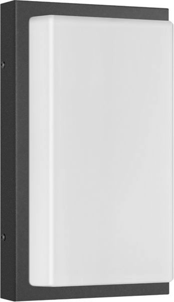 Wandleuchte aus Aluminium-Druckguss, pulverbeschichtete Blende in der Farbe Graphit, Diffusor aus Opalglas, innenliegender Bewegungsmelder, Reichweite bis 8m, LED-Modul 12 W, 1200 lm, 3000 K warmweiss, wechselbar, IP44