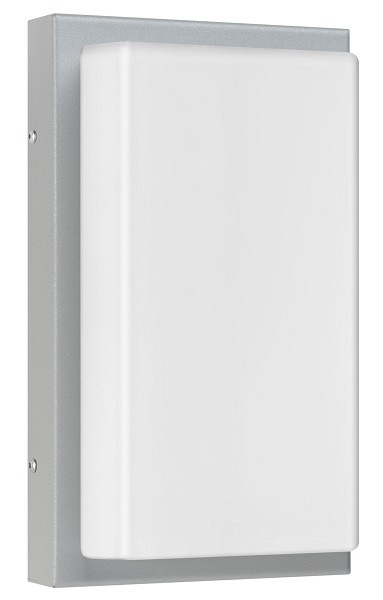 Wand- und Deckenleuchte aus Aluminium Druckguss, pulverbeschichtete Blende aus hochwertigem Edelstahl, hellgrau, Diffusor aus Opalglas, HxBxT 290 x 170 x 90 mm, IP44, 220-240 V 50/60 Hz, 1x E27 max. 75 Watt