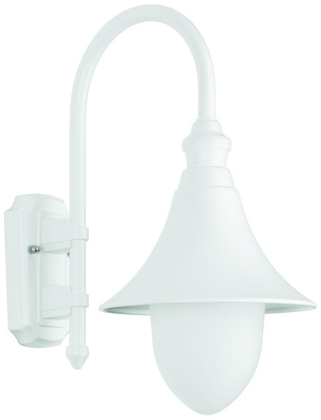 Pulverbeschichtete Leuchte aus Aluminium-Druckguss, Diffusor aus Opalglas. Farbe Weiß, Material Aluminium-Druckguss, Opalglas, Lichtquelle: 1 x E27, 100 Watt, 220-240 V, 50-60 Hz, IP43, Schutzklasse I, Maß: 500x250x410