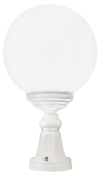 Pulverbeschichtete Standleuchte aus Aluminium-Druckguss, Höhe 400 mm, weiß, Diffusor aus Acrylglas opal, IP43, 1xE27, max. 75W, ohne Leuchtmittel