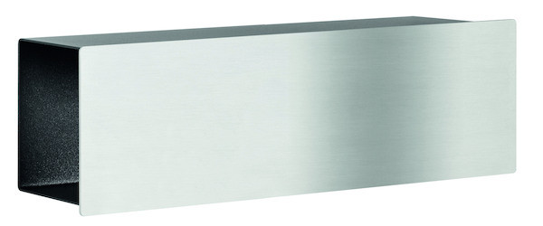 | Kurzbeschreibung | Zeitungsfach aus hochwertigem Edelstahl, Sichtblende aus gebürsteten Edelstahl, pulverbeschichteter Korpus (RAL 9005). |