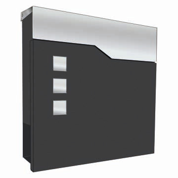 | Kurzbeschreibung | Pulverbeschichteter Briefkasten mit Zeitungsfach (DB 703). Briefkastenklappe aus gebürstetem Edelstahl. |