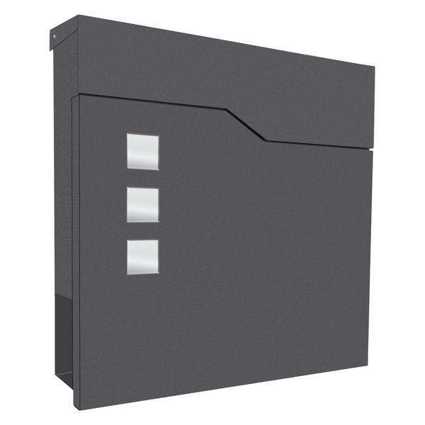 Pulverbeschichteter Briefkasten mit Zeitungsfach (DB 703). Farbe Graphit DB703, Material Edelstahl / vz. Blech, Maß: 375x370x105