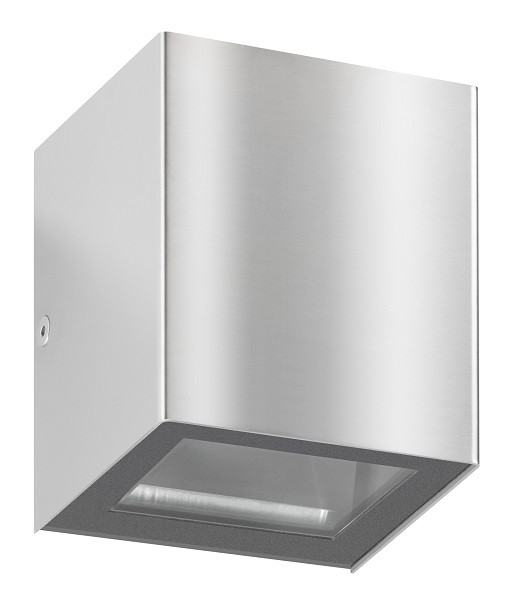 Up- und Down Wandleuchte Typ 5003, pulverbeschichtete Leuchte aus Aluminium-Druckguss, Blende aus hochwertigem Edelstahl, Diffusor aus Floatglas, zweiseitiger Lichtaustritt, HxBxT 100 x 90 x 90, 1x G9 max. 33 Watt, ohne Leuchtmittel, IP54, 220-240 V 50/60 Hz