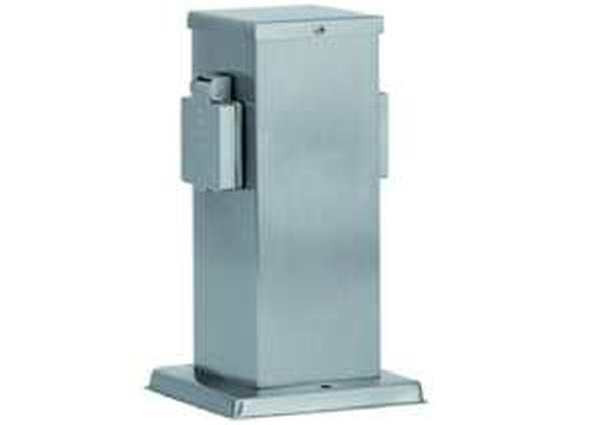 Ledar Outdoor 2er Steckdosenpfosten, stahl, CE, RoHS, REACH geprüft, 2 Steckdosen mit Deckel (TÜV geprüft), Edelstahl, IP44 - gegen Spritzwasser geschützt, 125x125x220 mm, 0,71 kg