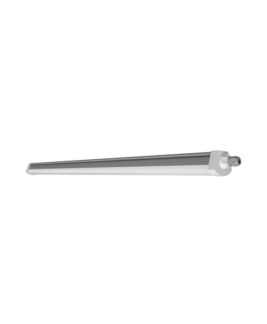 Feuchtraumleuchte, durchverdrahtet (L, N, E). Produkteigenschaften: Hohe Lichtausbeute: bis zu 120 lm/W. Schutzart: IP66. Ausstrahlungswinkel: 120°. Durchverdrahtung 3x1,5mm² bereits installiert. Gehäuse aus Polycarbonat. Produktvorteile: Gleichmäßige Lichtverteilung. Bis zu 50 % Energieersparnis (verglichen mit Leuchten, die Leuchtstofflampen verwenden). Einfache Installation dank Montageklammern, die frei an der Leuchte positioniert werden können. Einfacher Zugang zum Anschlussterminal dank Endkappe mit Twist-and-Lock-Mechanismus. Werkzeugloser elektrischer Anschluss dank Push-Button-Anschlussklemme. 5 Jahre Garantie. Anwendungsgebiete: Industrie- und Lagerareale. Parkplätze und Unterführungen. Garagen. Werkstätten, Fertigungsstraßen. Technische Ausstattung: Klammern aus Edelstahl und Sicherheitsschrauben enthalten. Montagezubehör enthalten (Abhängungs-Kit, Diebstahlschutz-Kit). Sicherheitshinweise: Alle elektrischen Anschlüsse dürfen nur von qualifiziertem Fachpersonal ausgeführt werden.. Vorsicht, Gefahr des elektrischen Schlages..
