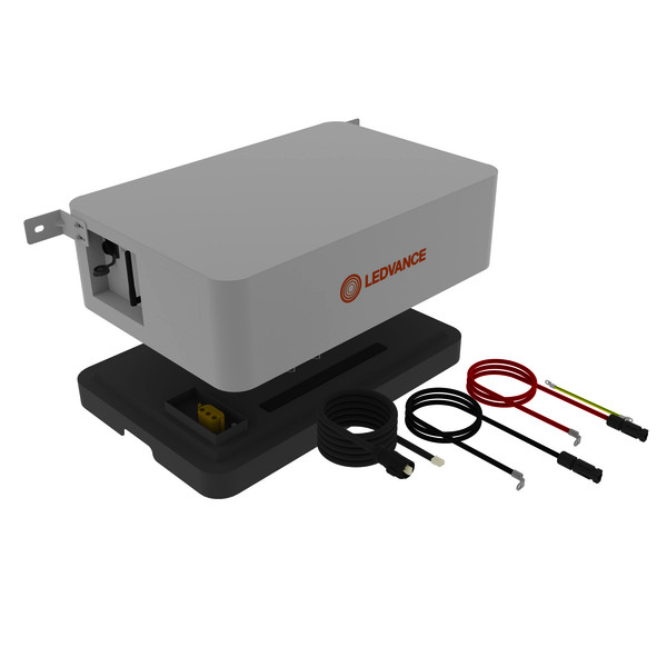 Hochspannungs-Batterie-Management-System, Montagesockel, Strom-, Netz- und Kommunikationskabel. Produkteigenschaften: Batteriemanagementsystem (BMS) mit einem Arbeitsbereich von 185,6 - 691,2 V. BMS kann mit 2 bis 6 LEDVANCE Hochspannungsbatteriemodulen zusammenarbeiten. Schutzart: IP65. Lade-/Entladestrom von 20 A (Nominal) und 40 A (Spitze). Eigene App auf dem Mobiltelefon für Fernüberwachung und -verwaltung. SOC-LED-Anzeige für den Energiestatus der Batterie. Produktvorteile: Kabel mit Steckern, die zu Wechselrichtern verschiedener Anbieter passen. Eingebauter DC-Schalter zur Bereitstellung eines kompletten Systems in einem Stapel. Stabiler Sockel für das Batteriemodul. Inklusive Wandhalterung, mit der der Batteriestapel an der Wand befestigt werden kann. Anwendungsgebiete: Wohnräume. Gewerbe- und Industrieanlagen. Freiflächenanlage. Technische Ausstattung: Hochspannungs-Batterie-Management-System. Sockel für Batteriemoduls. Alle notwendigen Kabel enthalten: Strom-, Kommunikations- und Erdungskabel. Wandhalterung (x2). Eingebauter DC-Schalter.