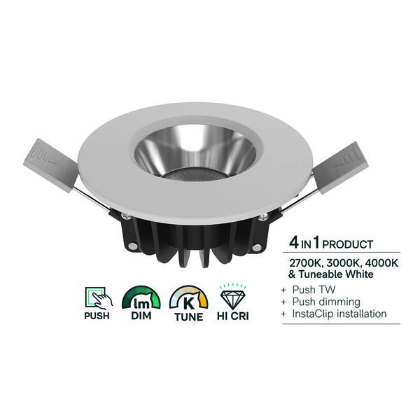 Einbaustrahler Flex, Tunable white (2700K-4000K) mit hoher Flexibilität durch 'InstaClip' Installation, Push, Einzellichtfarbe einstellbar
