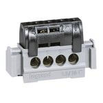 Legrand Klemmenleiste IP 20, berührungssicher, schwarz, für Schienenmontage (Schiene 12 x 2 mm) bzw. Verteilermontage, Kennzeichnung z.B. mit Duplix, Eingang: -- x 6 bis 25 mm², Abgang: 4 x 1,5 bis 16 mm², Länge: 47 mm, max. 100 A/400 VAC bei 25 mm² Eingang, max. 80 A /400 VAC bei 16 mm² Eingang, nach IEC 60998-2-1.