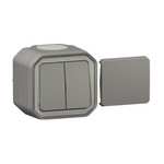 Plexo New Feuchtraum-Aufputz Multifunktionsschalter wahlweise Doppelwechselschalter/ Taster oder Wechselschalter/ Taster oder Wechselschalter 10 AX mit Taster 10 A, Steckklemmen (SL), IP 55, IK 08, in der Farbe: Grau