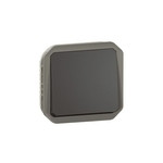 Plexo New Einsatz Taster 10 A, Steckklemmen (SL), IP 55, IK 08, in der Farbe: Anthrazit. Einsätze müssen in einem Tragring (Unterputzrahmen ) oder einem Aufputzgehäuse installiert werden.