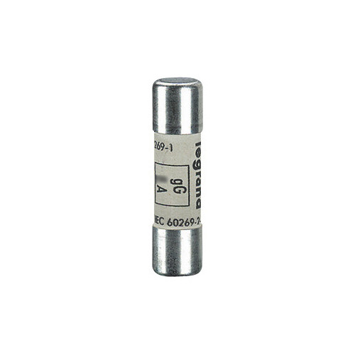 Legrand Zylindersicherung, Betriebsklasse gG (trägflink), Bemessungsstrom 4 A, Größe 10 x 38 mm, Bemessungsspannung 500 VAC, Ausschaltvermögen 100 kA, ohne Kennmelder, Betriebsklasse gG - Ganzbereichs-Schutz für allgemeine Zwecke, für Kabel- und Leitungsschutz.