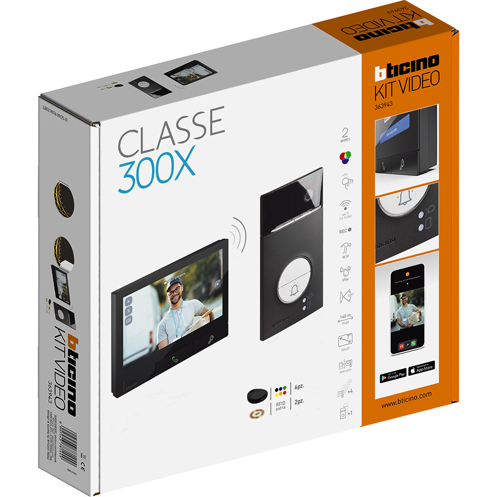 Flex'One Video-Set mit Türstation LINEA 3000 Schwarz + Transponderleser und hörerloser Hausstation CLASSE 300X Dark mit Smartphone-Anbindung. Das Video-Set beinhaltet: Eine hörerlose Video-Innenstelle Classe 300X in der Farbe: Dark (Best.Nr. 344743) mit 7“ Touchscreen, WLAN-Anbindung, Anrufbeantworterfunktion mit Audio/Video-Memory. Neben den Standardfunktionen kann die Innenstelle mittels WLAN mit einem Smartphone angebunden werden. Mit der HOME + SECURITY (kostenlos verfügbar für Android und iOS) kann die komplette Funktionalität (Gespräch, Video, Türöffner-Funktion) über das Smartphone - von Zuhause oder unterwegs - bedient werden. Eine Türstation LINEA 3000 Schwarz (Best.Nr.343093) mit Frontblende aus ZAMAK, Weitwinkel-Farbkamera und Transponderleser inkl. 8 Transponder (6x farbig und 2x flach). Die Schutzart beträgt IP54 und die Schlagfestigkeit IK10. Kann mittels Schiebeschalter für das Ein- oder Zweifamilienhaus konfiguriert werden. Ruftaste hinterleuchtet mit weißer LED. Für Aufputzmontage, kann aber mittels – separat erhältlichem – Zubehör (Best.Nr. 905198) Unterputz installiert werden. Inkludiert eine Spannungsversorgung (Best.Nr. 346050) und Türöffnerrelais (Best.Nr. 346250).
