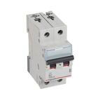 Legrand Leitungsschutzschalter TX3 nach EN 60898-1, VDE 0641-11, EN 60947-2, 2-polig, B-Charakteristik, Bemessungsstrom In 2 A, Bemessungsschaltvermögen Icn 6 kA nach EN 60898-1, Bemessungsspannung Un 400 VAC, Bemessungsfrequenz 50/60 Hz, Energiebegrenzungsklasse 3, Befestigung auf Hutprofilschiene EN 60715 durch eine rastende Schnellbefestigung, klare Information vorne auf jedem Gerät, eindeutige Schaltstellungsanzeige rot/grün am Schalthebel, mit Beschriftungsfenster, mit Untersteckschutz zum sicheren Einführen des Leiters in Fahrstuhlklemme, Anbau von Hilfsgeräten möglich. Leitungsschutzschalter mit B-Charakteristik sind vornehmlich für den Leitungsschutz in Licht- und Steckdosen-Stromkreisen bestimmt.