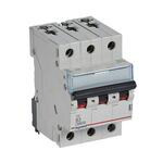 Legrand Leitungsschutzschalter TX3 nach EN 60898-1, VDE 0641-11, EN 60947-2, 3-polig, B-Charakteristik, Bemessungsstrom In 3 A, Bemessungsschaltvermögen Icn 6 kA nach EN 60898-1, Bemessungsspannung Un 400 VAC, Bemessungsfrequenz 50/60 Hz, Energiebegrenzungsklasse 3, Befestigung auf Hutprofilschiene EN 60715 durch eine rastende Schnellbefestigung, klare Information vorne auf jedem Gerät, eindeutige Schaltstellungsanzeige rot/grün am Schalthebel, mit Beschriftungsfenster, mit Untersteckschutz zum sicheren Einführen des Leiters in Fahrstuhlklemme, Anbau von Hilfsgeräten möglich. Leitungsschutzschalter mit B-Charakteristik sind vornehmlich für den Leitungsschutz in Licht- und Steckdosen-Stromkreisen bestimmt.