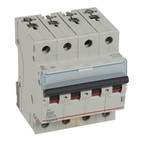 Legrand Leitungsschutzschalter TX3 nach EN 60898-1, VDE 0641-11, EN 60947-2, 4-polig, B-Charakteristik, Bemessungsstrom In 50 A, Bemessungsschaltvermögen Icn 6 kA nach EN 60898-1, Bemessungsspannung Un 400 VAC, Bemessungsfrequenz 50/60 Hz, Energiebegrenzungsklasse 3, Befestigung auf Hutprofilschiene EN 60715 durch eine rastende Schnellbefestigung, klare Information vorne auf jedem Gerät, eindeutige Schaltstellungsanzeige rot/grün am Schalthebel, mit Beschriftungsfenster, mit Untersteckschutz zum sicheren Einführen des Leiters in Fahrstuhlklemme, Anbau von Hilfsgeräten möglich. Leitungsschutzschalter mit B-Charakteristik sind vornehmlich für den Leitungsschutz in Licht- und Steckdosen-Stromkreisen bestimmt.