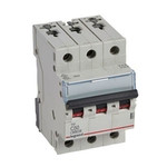 Legrand Leitungsschutzschalter TX3 nach EN 60898-1, VDE 0641-11, EN 60947-2, 3-polig, C-Charakteristik, Bemessungsstrom In 50 A, Bemessungsschaltvermögen Icn 6 kA nach EN 60898-1, Bemessungsspannung Un 400 VAC, Bemessungsfrequenz 50/60 Hz, Energiebegrenzungsklasse 3, Befestigung auf Hutprofilschiene EN 60715 durch eine rastende Schnellbefestigung, klare Information vorne auf jedem Gerät, eindeutige Schaltstellungsanzeige rot/grün am Schalthebel, mit Beschriftungsfenster, mit Untersteckschutz zum sicheren Einführen des Leiters in Fahrstuhlklemme, Anbau von Hilfsgeräten möglich. Leitungsschutzschalter mit C-Charakteristik sind für den Leitungsschutz bei Geräten mit hohen Einschaltströmen (z.B. Motoren und Transformatoren) vorgesehen.