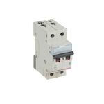 Legrand Leitungsschutzschalter TX3 nach EN 60898-1, VDE 0641-11, EN 60947-2, 2-polig, D-Charakteristik, Bemessungsstrom In 1 A, Bemessungsschaltvermögen Icn 6 kA nach EN 60898-1, Bemessungsspannung Un 400 VAC, Bemessungsfrequenz 50/60 Hz, Energiebegrenzungsklasse 3, Befestigung auf Hutprofilschiene EN 60715 durch eine rastende Schnellbefestigung, klare Information vorne auf jedem Gerät, eindeutige Schaltstellungsanzeige rot/grün am Schalthebel, mit Beschriftungsfenster, mit Untersteckschutz zum sicheren Einführen des Leiters in Fahrstuhlklemme, Anbau von Hilfsgeräten möglich. Leitungsschutzschalter mit D-Charakteristik sind für den Leitungsschutz in Kraftstromkreisen mit sehr hohen Einschaltströmen vorzusehen (z.B. Schweißtrafos).