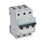 Legrand Leitungsschutzschalter TX3 nach EN 60898-1, VDE 0641-11, EN 60947-2, 3-polig, D-Charakteristik, Bemessungsstrom In 8 A, Bemessungsschaltvermögen Icn 6 kA nach EN 60898-1, Bemessungsspannung Un 400 VAC, Bemessungsfrequenz 50/60 Hz, Energiebegrenzungsklasse 3, Befestigung auf Hutprofilschiene EN 60715 durch eine rastende Schnellbefestigung, klare Information vorne auf jedem Gerät, eindeutige Schaltstellungsanzeige rot/grün am Schalthebel, mit Beschriftungsfenster, mit Untersteckschutz zum sicheren Einführen des Leiters in Fahrstuhlklemme, Anbau von Hilfsgeräten möglich. Leitungsschutzschalter mit D-Charakteristik sind für den Leitungsschutz in Kraftstromkreisen mit sehr hohen Einschaltströmen vorzusehen (z.B. Schweißtrafos).