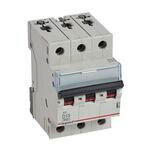 Legrand Leitungsschutzschalter TX3 nach EN 60898-1, VDE 0641-11, EN 60947-2, 3-polig, D-Charakteristik, Bemessungsstrom In 13 A, Bemessungsschaltvermögen Icn 6 kA nach EN 60898-1, Bemessungsspannung Un 400 VAC, Bemessungsfrequenz 50/60 Hz, Energiebegrenzungsklasse 3, Befestigung auf Hutprofilschiene EN 60715 durch eine rastende Schnellbefestigung, klare Information vorne auf jedem Gerät, eindeutige Schaltstellungsanzeige rot/grün am Schalthebel, mit Beschriftungsfenster, mit Untersteckschutz zum sicheren Einführen des Leiters in Fahrstuhlklemme, Anbau von Hilfsgeräten möglich. Leitungsschutzschalter mit D-Charakteristik sind für den Leitungsschutz in Kraftstromkreisen mit sehr hohen Einschaltströmen vorzusehen (z.B. Schweißtrafos).