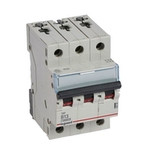 Legrand Leitungsschutzschalter TX3 nach EN 60898-1, VDE 0641-11, EN 60947-2, 3-polig, B-Charakteristik, Bemessungsstrom In 13 A, Bemessungsschaltvermögen Icn 10 kA nach EN 60898-1, Bemessungsspannung Un 400 VAC, Bemessungsfrequenz 50/60 Hz, Energiebegrenzungsklasse 3, Befestigung auf Hutprofilschiene EN 60715 durch eine rastende Schnellbefestigung, klare Information vorne auf jedem Gerät, eindeutige Schaltstellungsanzeige rot/grün am Schalthebel, mit Beschriftungsfenster, mit Untersteckschutz zum sicheren Einführen des Leiters in Fahrstuhlklemme, Anbau von Hilfsgeräten möglich. Leitungsschutzschalter mit B-Charakteristik sind vornehmlich für den Leitungsschutz in Licht- und Steckdosen-Stromkreisen bestimmt.