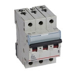 Legrand Leitungsschutzschalter TX3 nach EN 60898-1, VDE 0641-11, EN 60947-2, 3-polig, B-Charakteristik, Bemessungsstrom In 50 A, Bemessungsschaltvermögen Icn 10 kA nach EN 60898-1, Bemessungsspannung Un 400 VAC, Bemessungsfrequenz 50/60 Hz, Energiebegrenzungsklasse 3, Befestigung auf Hutprofilschiene EN 60715 durch eine rastende Schnellbefestigung, klare Information vorne auf jedem Gerät, eindeutige Schaltstellungsanzeige rot/grün am Schalthebel, mit Beschriftungsfenster, mit Untersteckschutz zum sicheren Einführen des Leiters in Fahrstuhlklemme, Anbau von Hilfsgeräten möglich. Leitungsschutzschalter mit B-Charakteristik sind vornehmlich für den Leitungsschutz in Licht- und Steckdosen-Stromkreisen bestimmt.