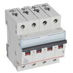 Legrand Leitungsschutzschalter TX3 nach EN 60898-1, VDE 0641-11, EN 60947-2, 4-polig, C-Charakteristik, Bemessungsstrom In 50 A, Bemessungsschaltvermögen Icn 10 kA nach EN 60898-1, Bemessungsspannung Un 400 VAC, Bemessungsfrequenz 50/60 Hz, Energiebegrenzungsklasse 3, Befestigung auf Hutprofilschiene EN 60715 durch eine rastende Schnellbefestigung, klare Information vorne auf jedem Gerät, eindeutige Schaltstellungsanzeige rot/grün am Schalthebel, mit Beschriftungsfenster, mit Untersteckschutz zum sicheren Einführen des Leiters in Fahrstuhlklemme, Anbau von Hilfsgeräten möglich. Leitungsschutzschalter mit C-Charakteristik sind für den Leitungsschutz bei Geräten mit hohen Einschaltströmen (z.B. Motoren und Transformatoren) vorgesehen.