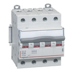 Legrand Lasttrennschalter DX3, 4-polig, 63A 400 VAC, nach EN 60947-3, EN 60669-2-4. Gebrauchskategorie AC-22A. Befestigung auf Hutprofilschiene EN 60715 durch rastende Schnellbefestigungen, klare Information vorne auf jedem Gerät, eindeutige Schaltstellungsanzeige rot/grün am Schalthebel (verriegelbar), mit Beschriftungsfenster, einpolig verschienbar mit Legrand Stiftkammschienen, Anbau von Hilfsgeräten möglich.