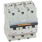 Legrand Leitungsschutzschalter DX3 nach EN 60947-2, 3-polig, C-Charakteristik, Bemessungsstrom In 80 A, Bemessungsschaltvermögen 25 kA nach EN 60947-2, Bemessungsspannung Un 400 VAC, Bemessungsfrequenz 50/60 Hz, Befestigung auf Hutprofilschiene EN 60715 durch zwei rastende Schnellbefestigungen, klare Information vorne auf jedem Gerät, eindeutige Schaltstellungsanzeige rot/grün, mit Beschriftungsfenster, mit Untersteckschutz zum sicheren Einführen des Leiters in Fahrstuhlklemme, Anbau von Hilfsgeräten möglich. Leitungsschutzschalter mit C-Charakteristik sind für den Leitungsschutz bei Geräten mit hohen Einschaltströmen (z.B. Motoren und Transformatoren) vorgesehen.