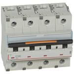 Legrand Leitungsschutzschalter DX3 nach EN 60947-2, 4-polig, C-Charakteristik, Bemessungsstrom In 100 A, Bemessungsschaltvermögen 25 kA nach EN 60947-2, Bemessungsspannung Un 400 VAC, Bemessungsfrequenz 50/60 Hz, Befestigung auf Hutprofilschiene EN 60715 durch zwei rastende Schnellbefestigungen, klare Information vorne auf jedem Gerät, eindeutige Schaltstellungsanzeige rot/grün, mit Beschriftungsfenster, mit Untersteckschutz zum sicheren Einführen des Leiters in Fahrstuhlklemme, Anbau von Hilfsgeräten möglich. Leitungsschutzschalter mit C-Charakteristik sind für den Leitungsschutz bei Geräten mit hohen Einschaltströmen (z.B. Motoren und Transformatoren) vorgesehen.