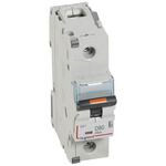 Legrand Leitungsschutzschalter DX3 nach EN 60947-2, 1-polig, D-Charakteristik, Bemessungsstrom In 80 A, Bemessungsschaltvermögen 25 kA nach EN 60947-2, Bemessungsspannung Un 230/400 VAC, Bemessungsfrequenz 50/60 Hz, Befestigung auf Hutprofilschiene EN 60715 durch zwei rastende Schnellbefestigungen, klare Information vorne auf jedem Gerät, eindeutige Schaltstellungsanzeige rot/grün, mit Beschriftungsfenster, mit Untersteckschutz zum sicheren Einführen des Leiters in Fahrstuhlklemme, Anbau von Hilfsgeräten möglich. Leitungsschutzschalter mit D-Charakteristik sind für den Leitungsschutz in Kraftstromkreisen mit sehr hohen Einschaltströmen vorzusehen (z.B. Schweißtrafos).